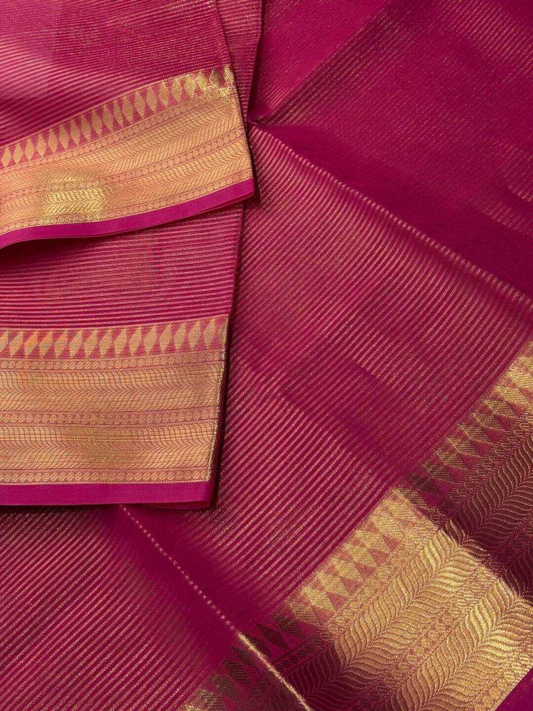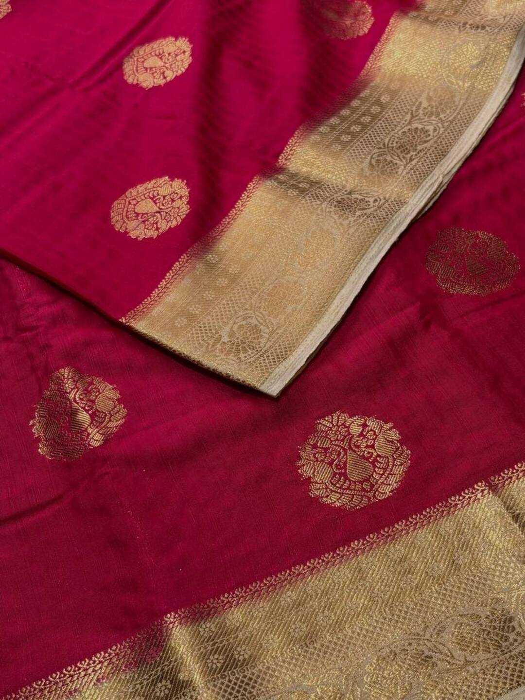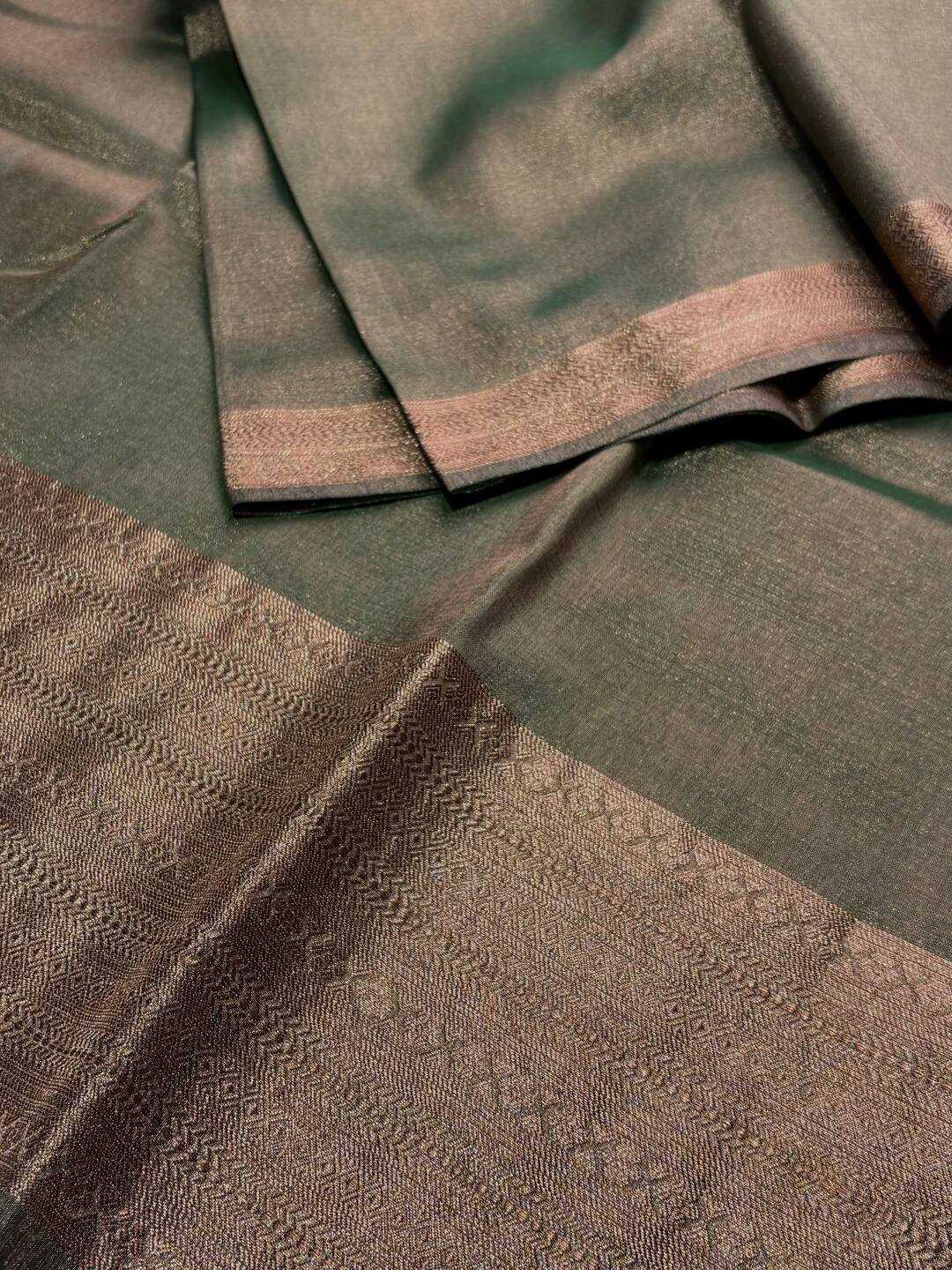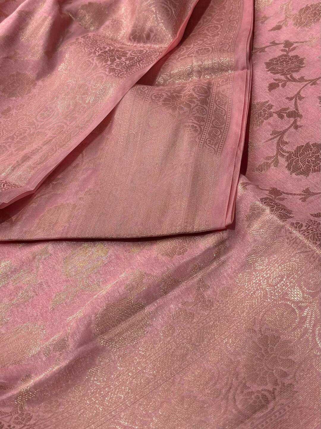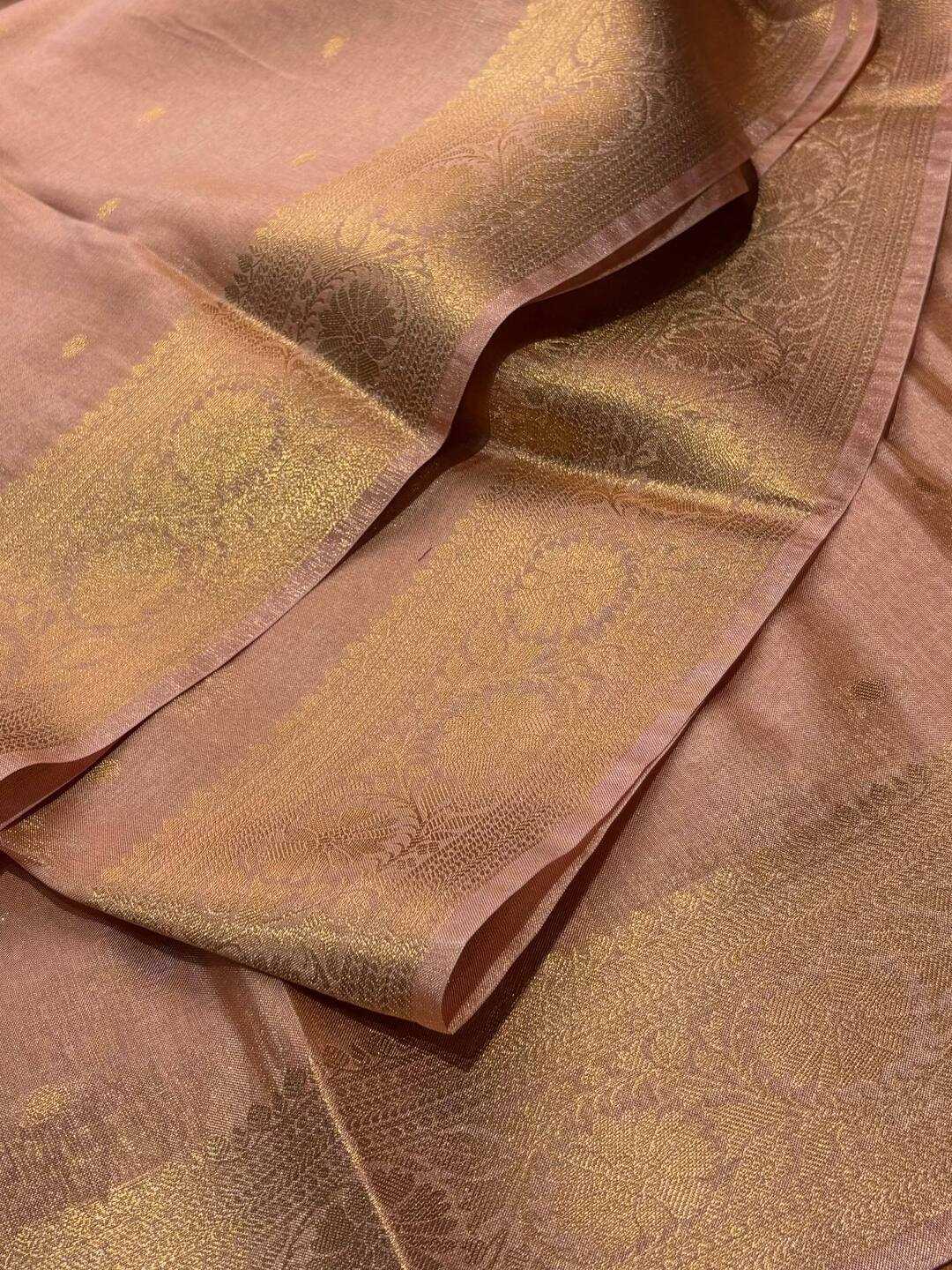 Golden Pastel Pink Banaras Tissue Cotton Silk Saree