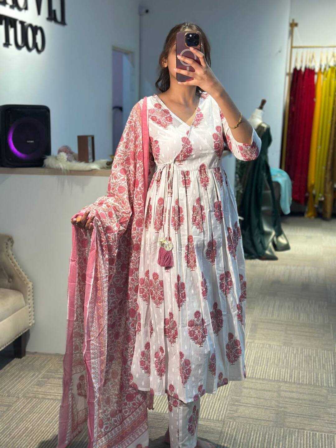 Teal Blue Handblock Cotton Anarkali Cotton Suit