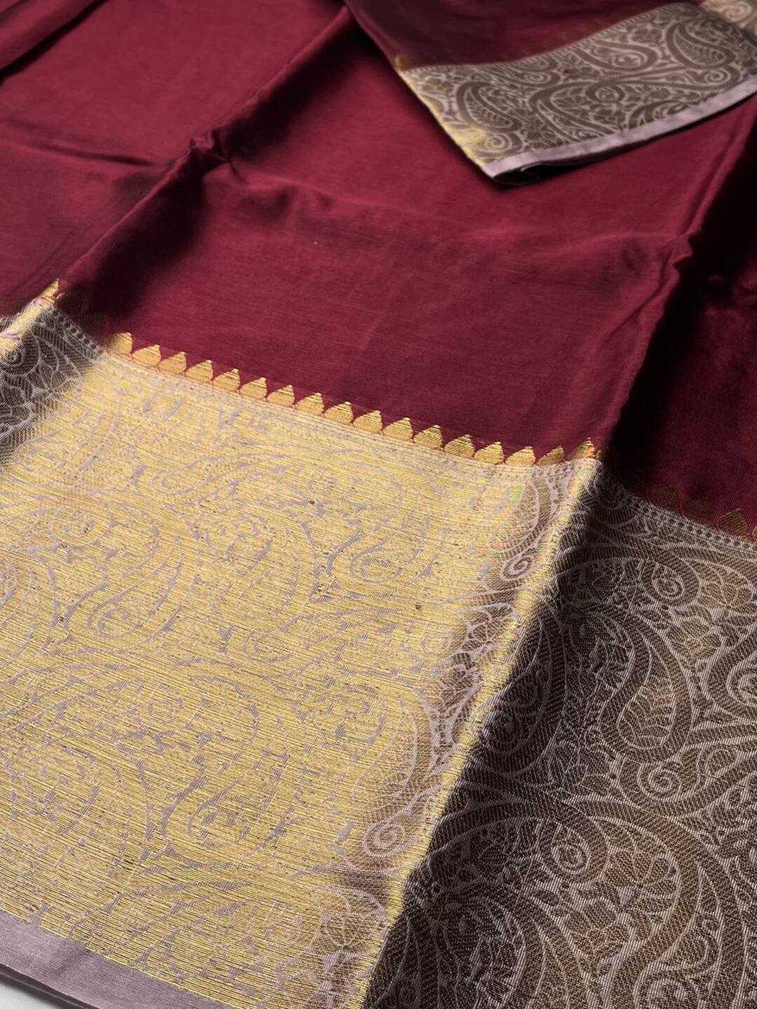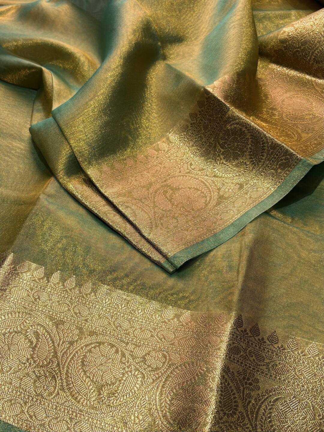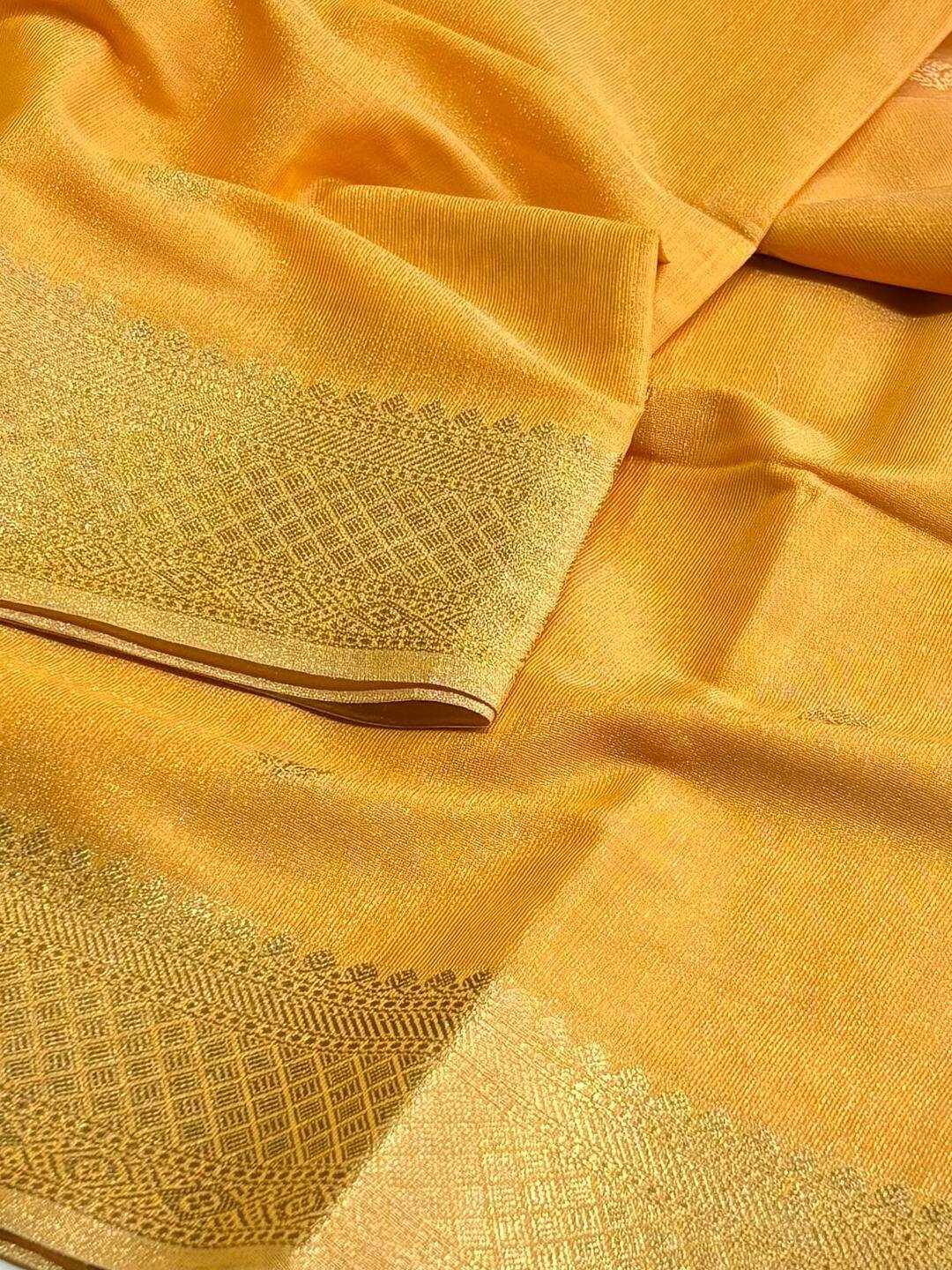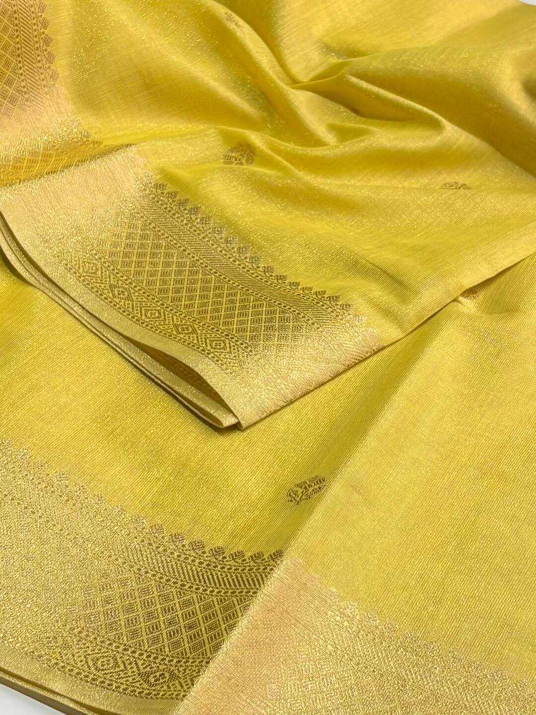 Golden Yellow Banaras Tissue Cotton Silk Saree