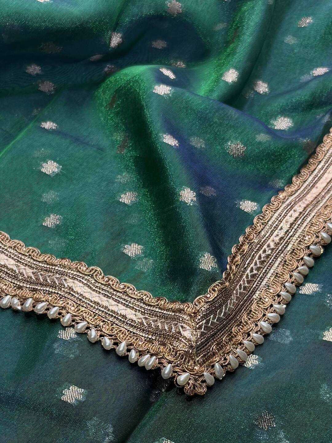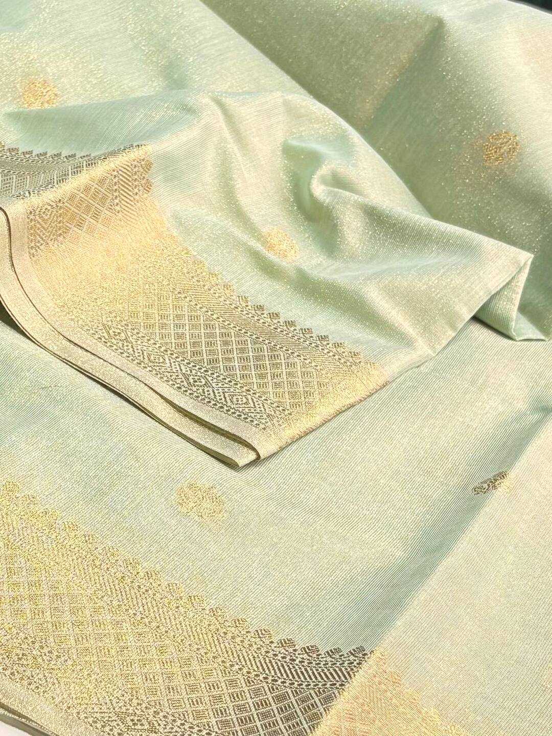 Peacock Blue Banaras Tissue Cotton Silk Saree