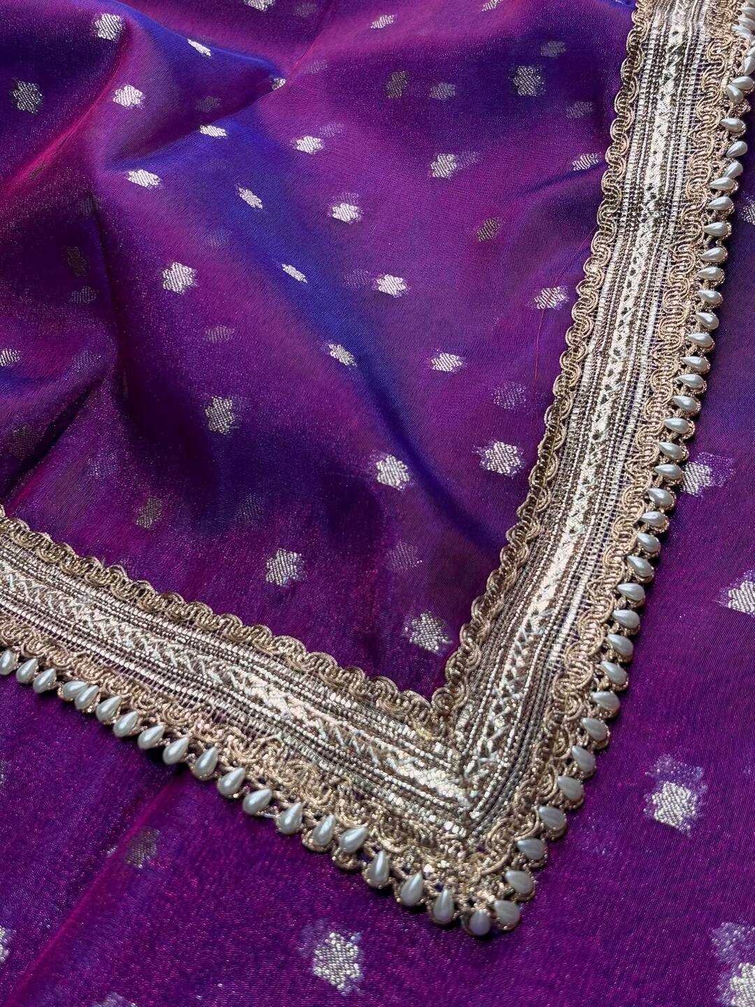 Dual Tone Purple Banaras Tissue Cotton Silk Saree