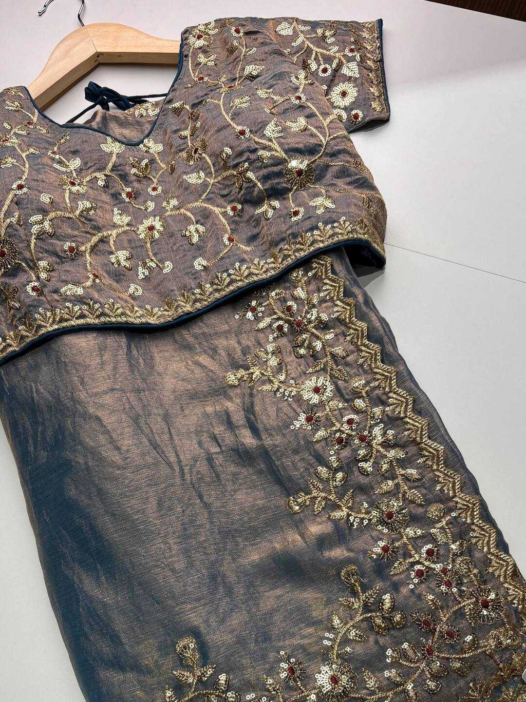 Dusty Blue Georgette Saree With Readymade Saree Blouse
