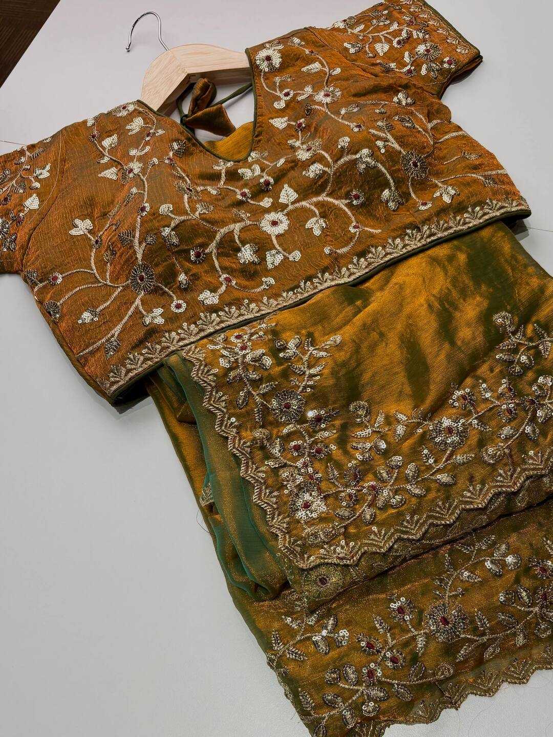 Golden Green Georgette Saree With Readymade Saree Blouse