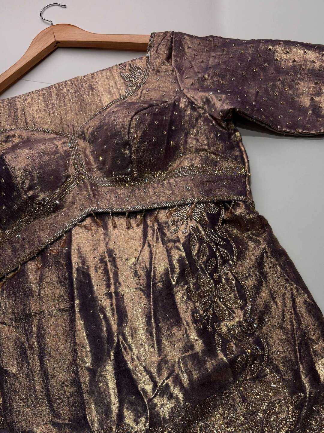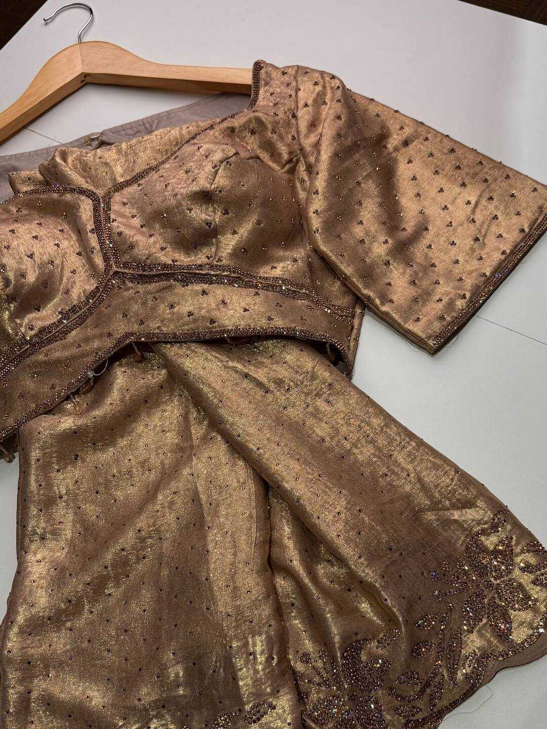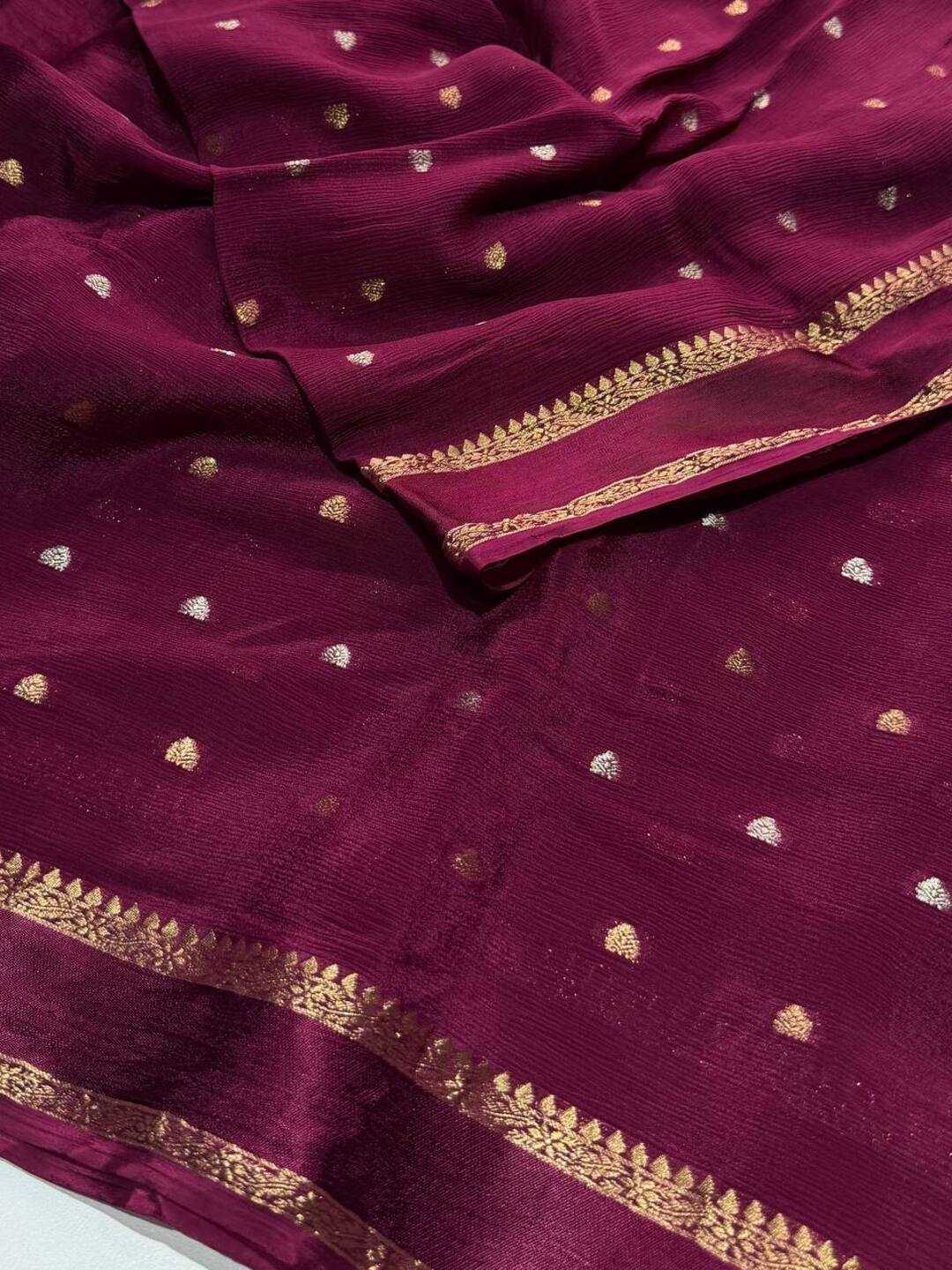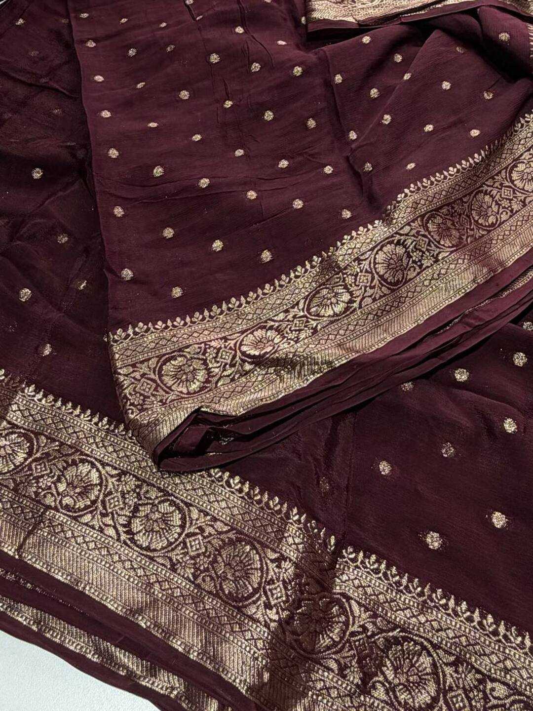Golden Dusty Purple Georgette Saree With Readymade Saree Blouse