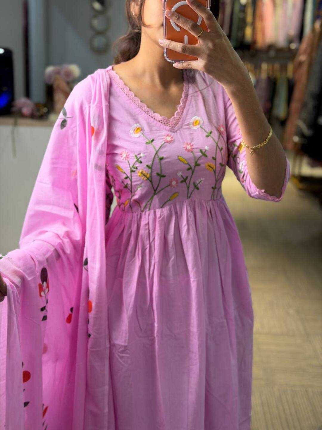 A perfect blend of comfort and style, this cotton Anarkali suit will be your go to choice for effortless ethnic charm. Ideal for festive gatherings, casual outings or office wear.