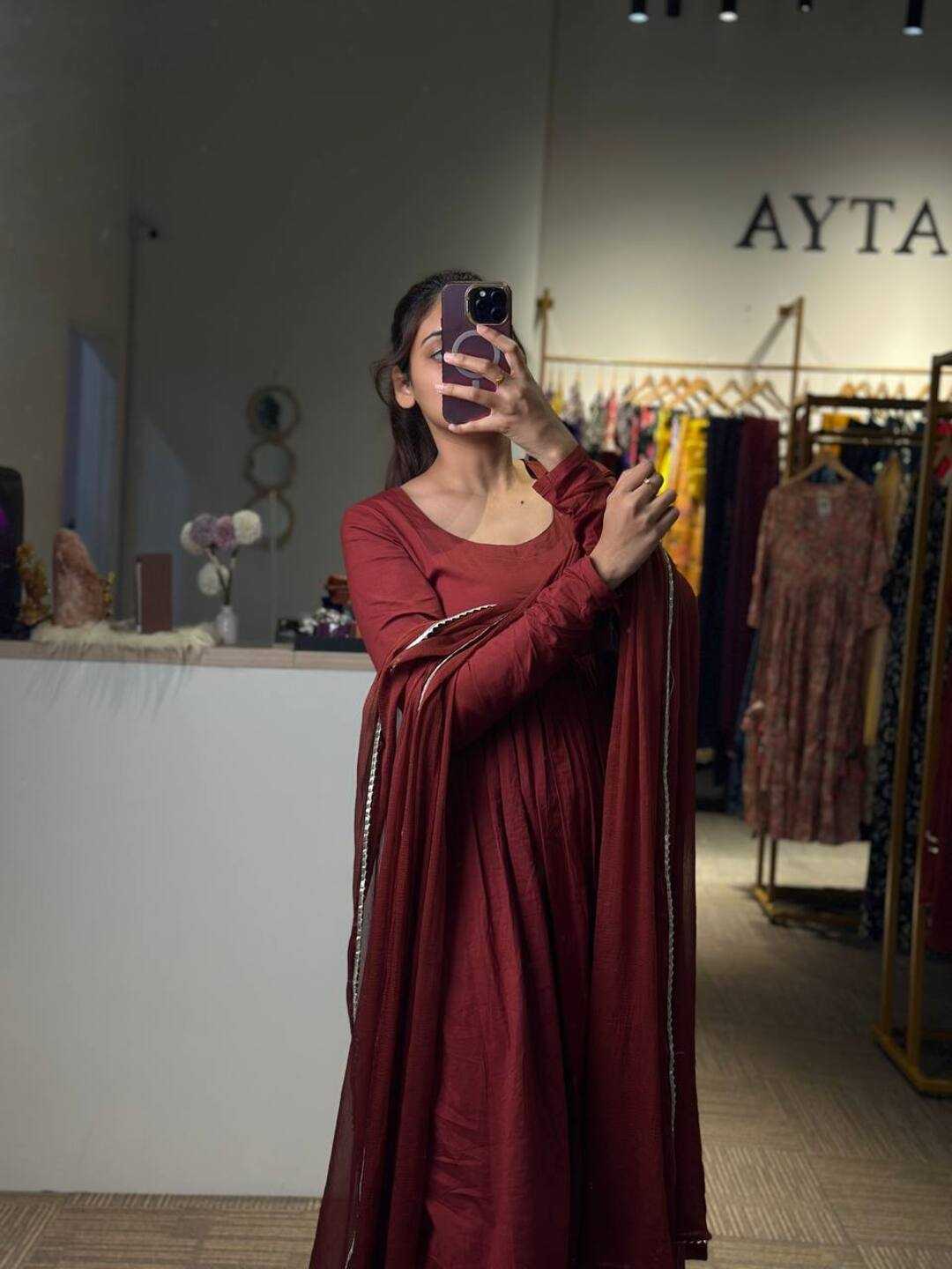 A perfect blend of comfort and style, this cotton Anarkali suit will be your go to choice for effortless ethnic charm. Ideal for festive gatherings, casual outings or office wear.