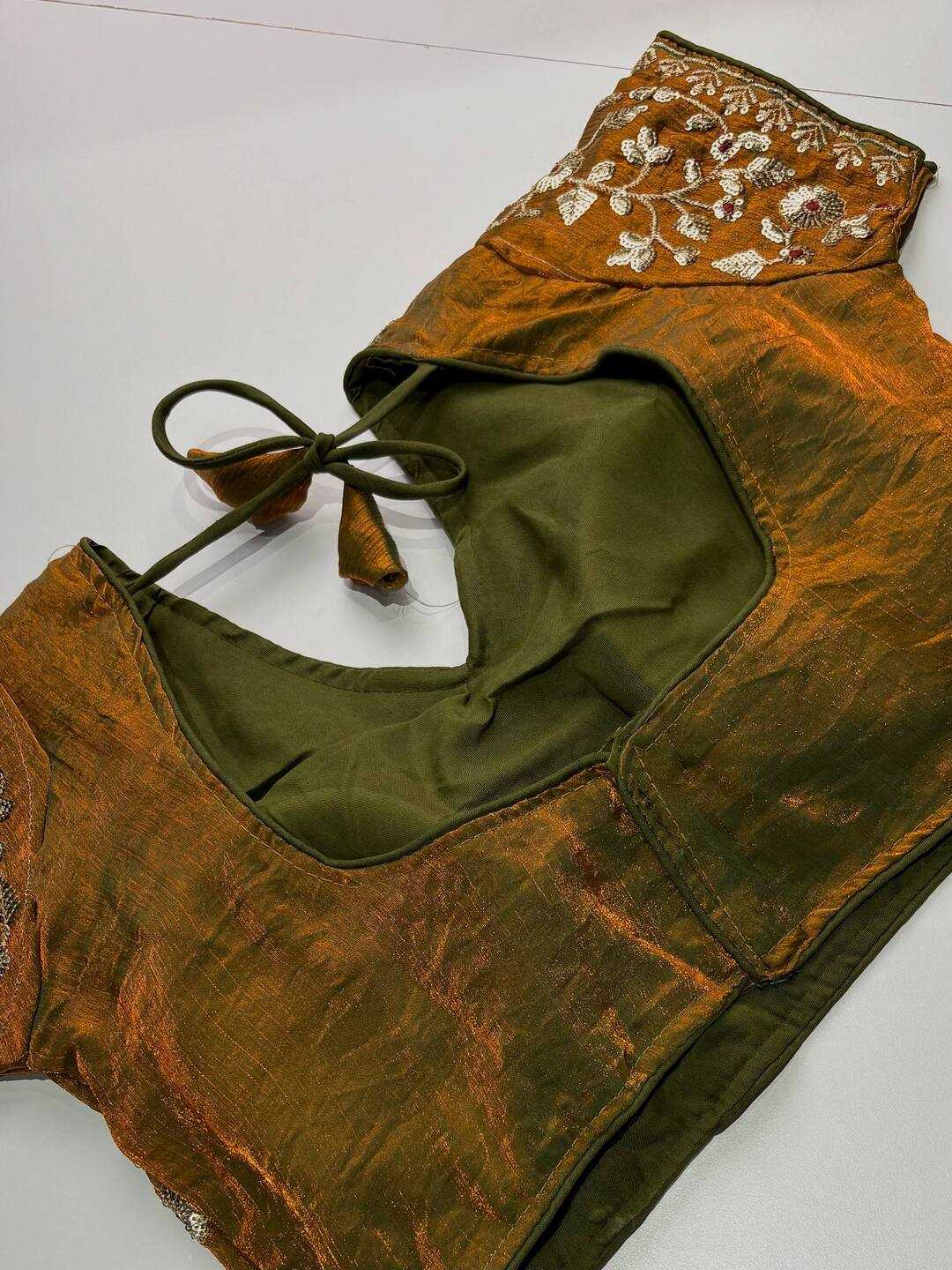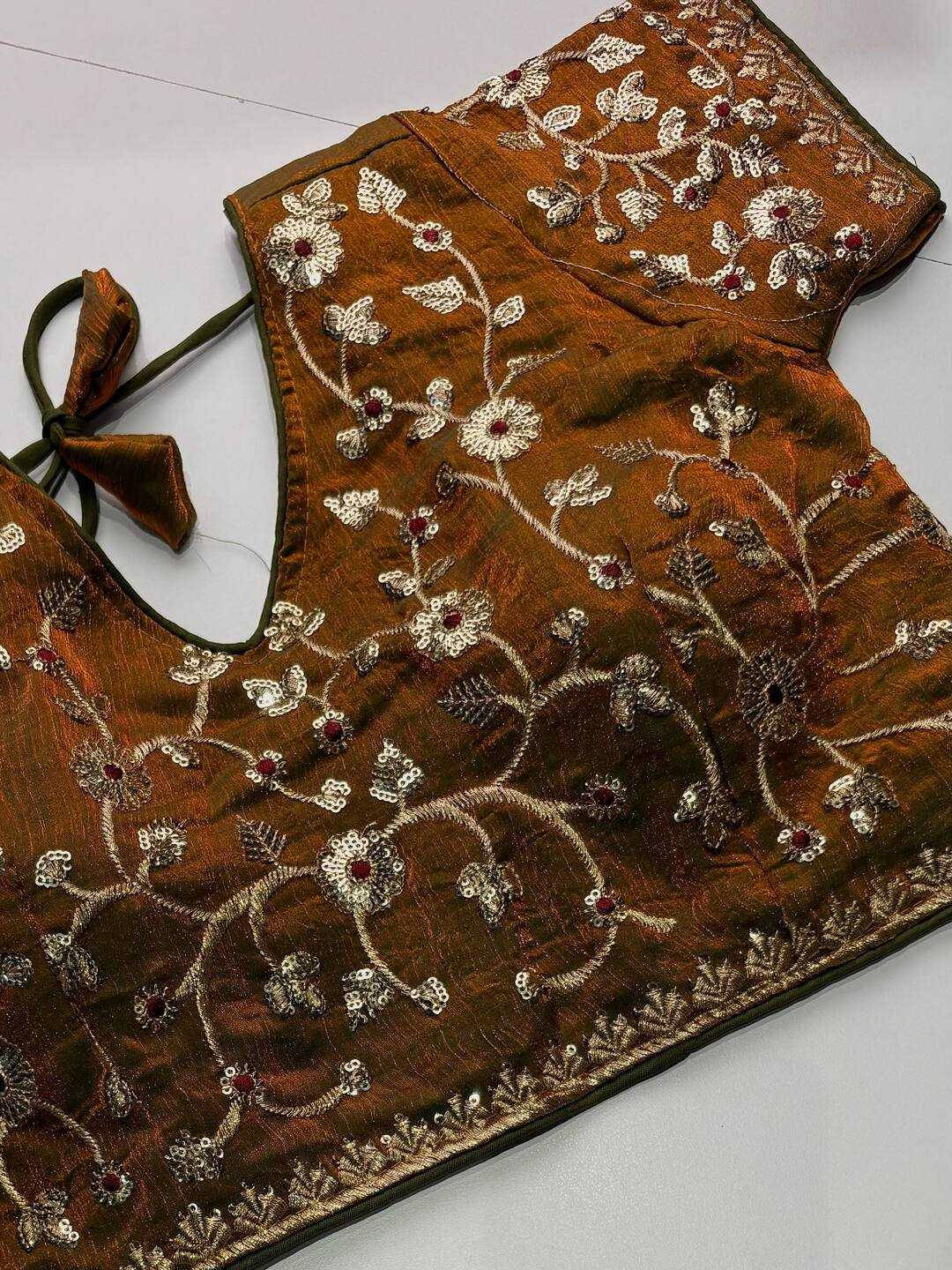 The saree comes with a readymade blouse up till size 46 which is attached to the saree. We try to stay as accurate as possible to the original colors with pictures . However, due to different screen calibrations and photography , colors may vary slightly from pictures. Since the products is machine made there might be slight unevenness and irregularities in the weave pattern.