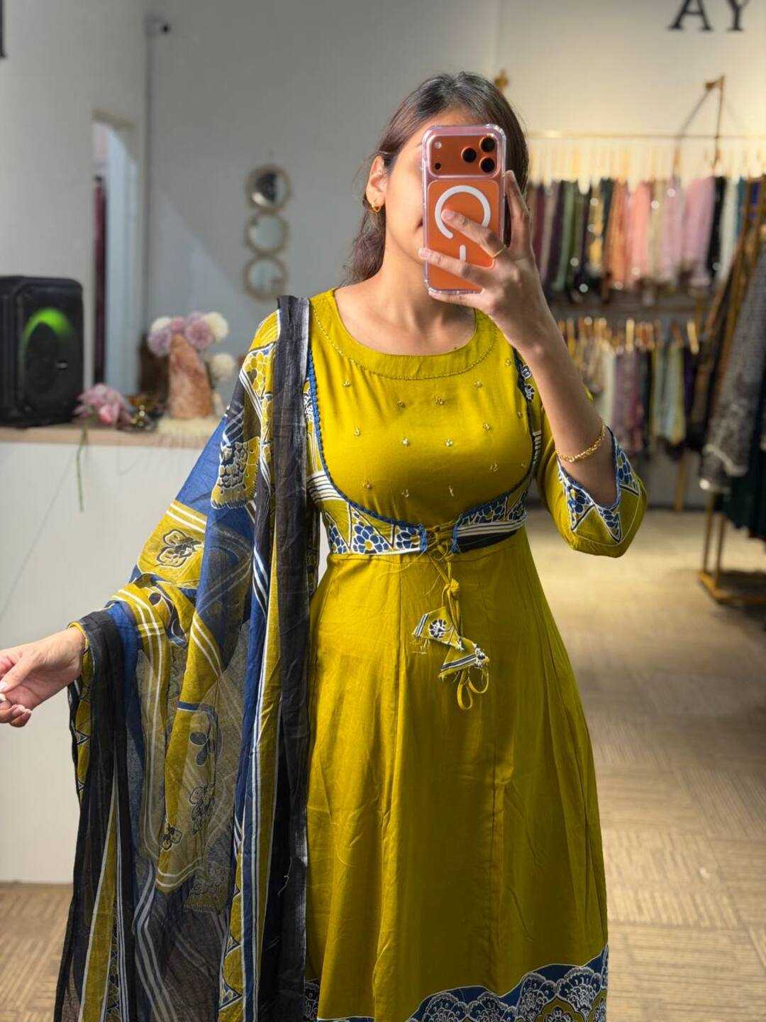A perfect blend of comfort and style, this cotton Anarkali suit will be your go to choice for effortless ethnic charm. Ideal for festive gatherings, casual outings or office wear.